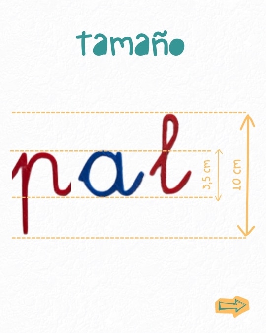 📏 Las minúsculas tienen una altura de 3,5cm (c, m, n…) y 7 cm (b, d, g…).