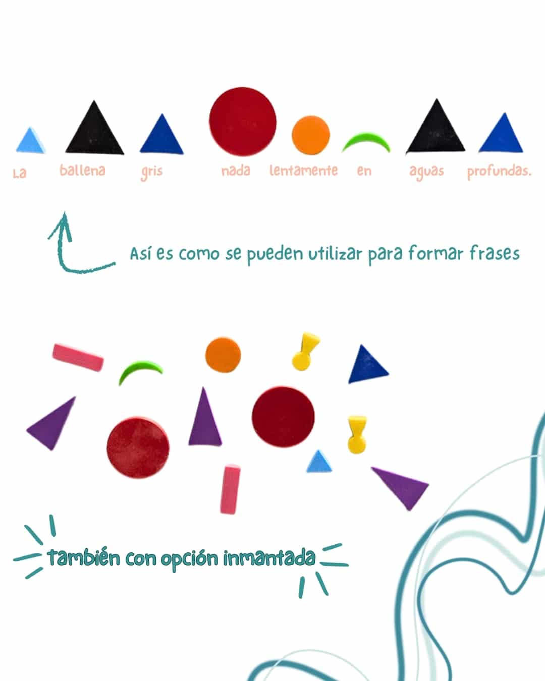 Con estos símbolos, los niños pueden explorar cómo se construyen las frases, identificar sus partes y, casi sin darse cuenta, descubrir la estructura del lenguaje.